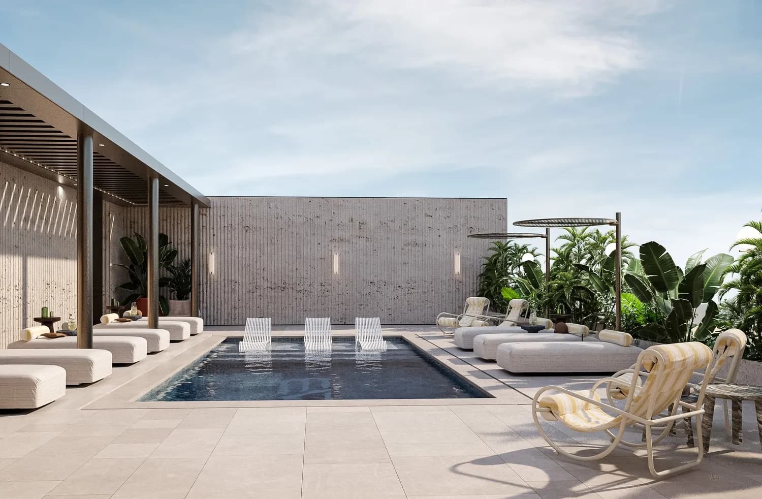 This is not a tower loaded with facilities that inflate service charges and go underused. For a 21-unit building, the offer is proportionate: outdoor leisure, a space for exercise, and planted grounds that soften what is otherwise an open desert-adjacent environment. The outdoor cinema is an amenity that works most practically in a low-density setting, where sound and light bleed less into neighbouring units.