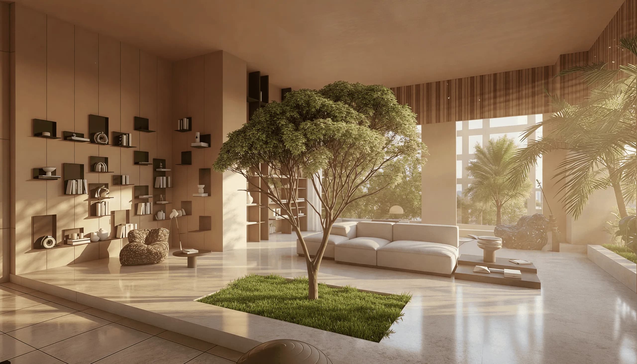 At six storeys, the project is modest by Dubai standards. That is deliberate: the low-rise format produces a density that larger towers in the district cannot replicate, with communal spaces that serve a small resident population of 39 households rather than hundreds.