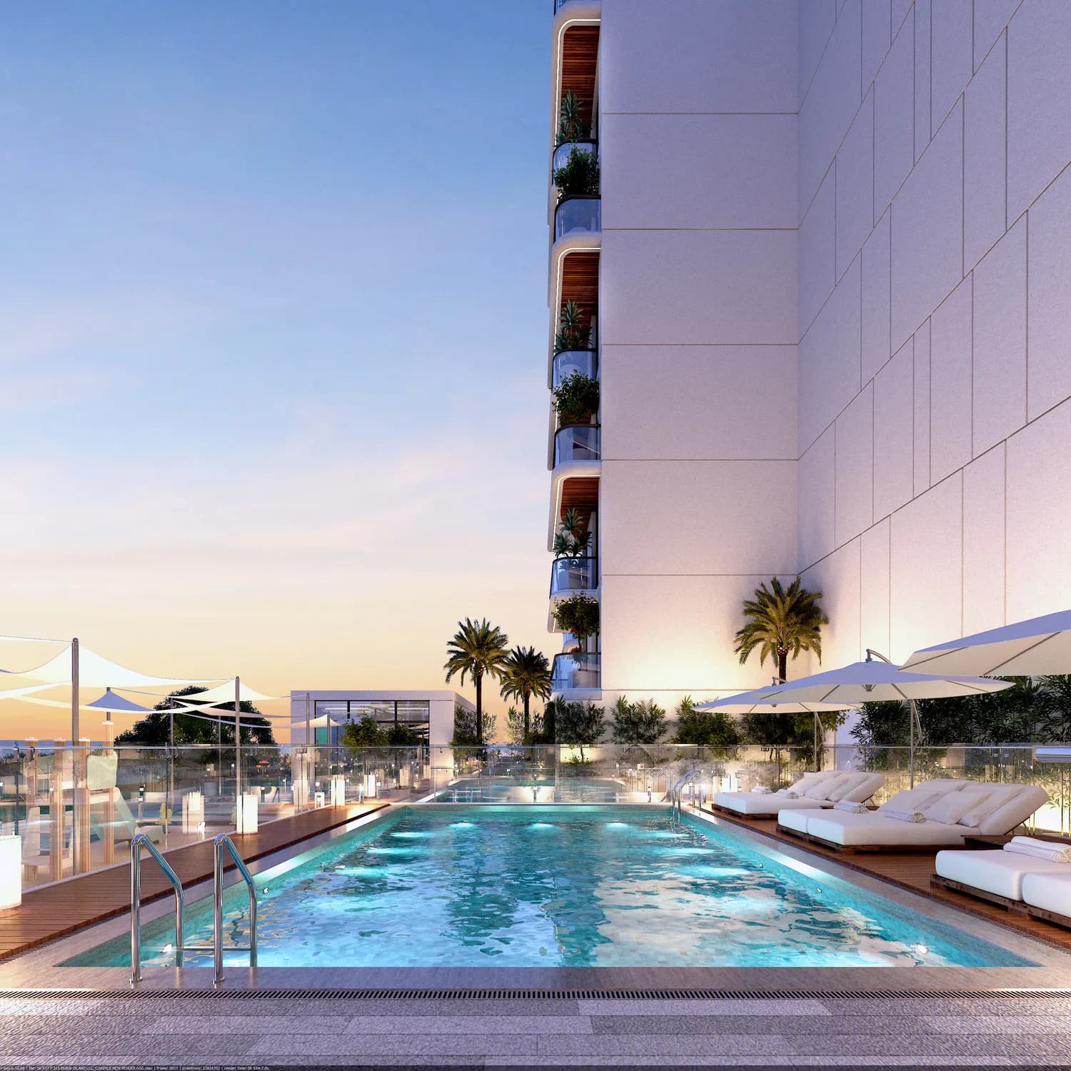 The architecture follows a contemporary low-rise format suited to the island setting, where height restrictions and proximity to the water shape what gets built. Cirrera has positioned the project to take advantage of gulf-facing orientations, and the building's terraced format, as the name suggests, points to private outdoor space as a design priority rather than an afterthought.