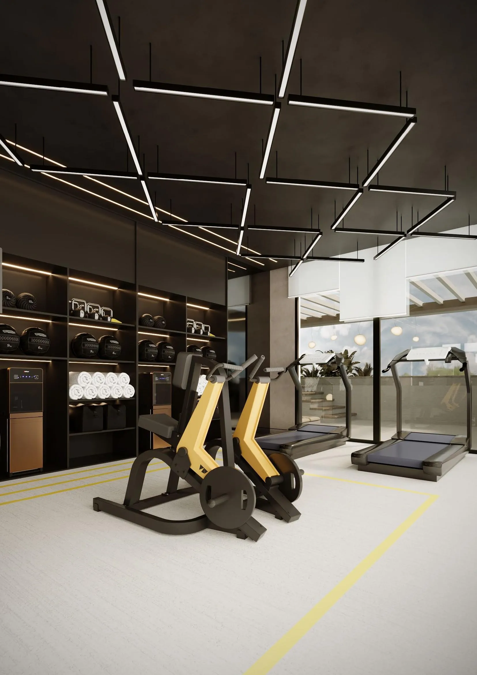 The building's amenity offer is tight and functional: a rooftop swimming pool, an indoor gym and a dedicated yoga area. There is no co-working space, no cinema room, no padel court. For some buyers that absence is a drawback; for others it is the point. A smaller amenity footprint keeps maintenance costs contained and avoids the chronic underuse that burdens larger mixed-use developments.