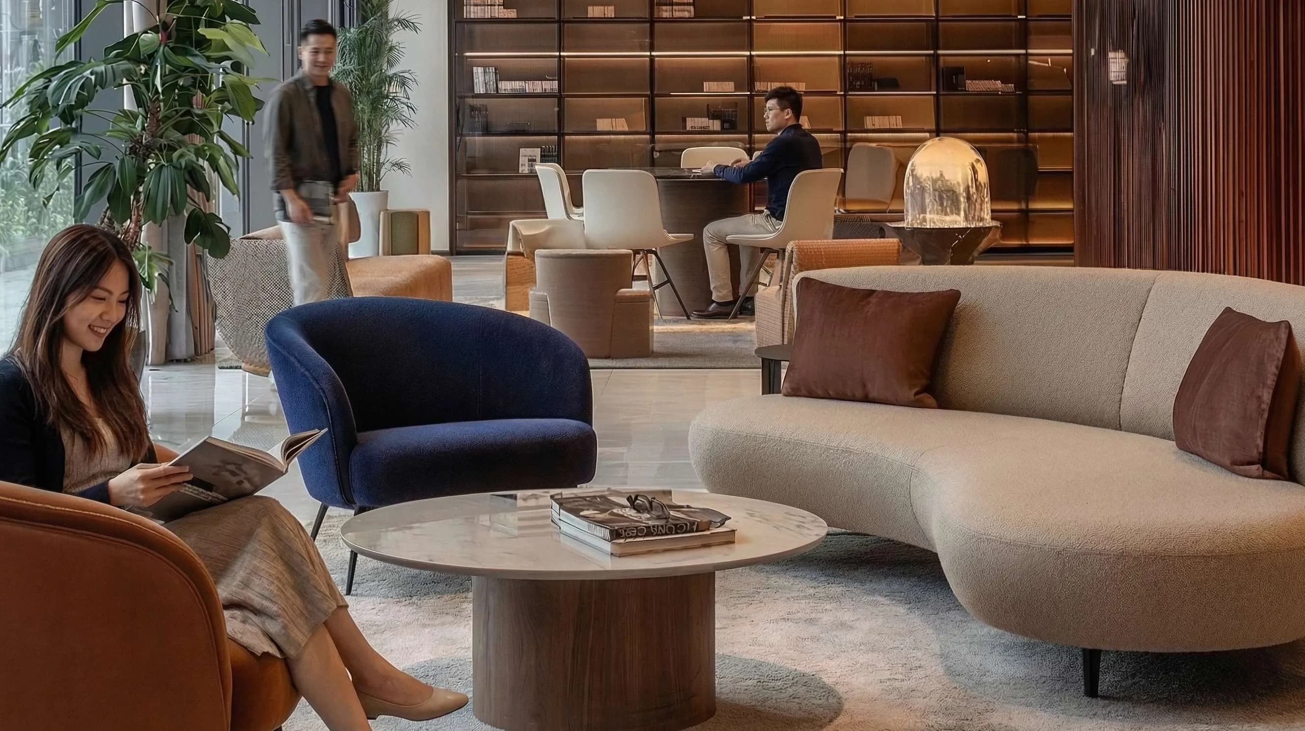 Interiors draw on warm materials and elevated ceiling heights. The emphasis on natural light through generous window proportions is a consistent design thread across the layouts. For a buyer treating the unit as a rental asset, furnished delivery in a district with an established workforce population has obvious logic.