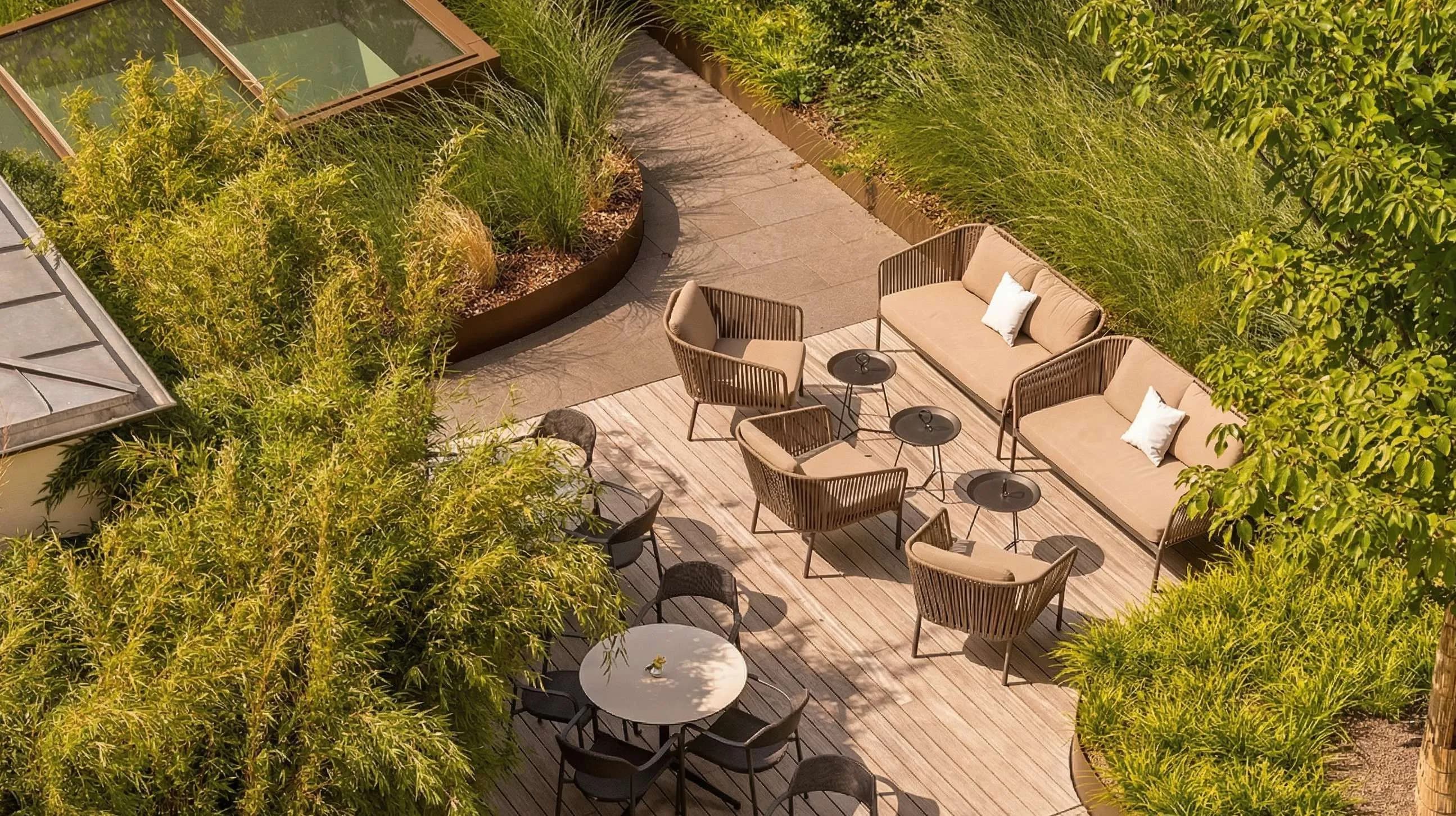 Zoya has distributed the amenity programme across two levels rather than consolidating everything into a single communal floor. The rooftop carries an open swimming pool, pool lounge, landscaped seating and a business centre. The first floor holds a separate indoor pool, outdoor gym, running track and additional outdoor seating areas alongside an indoor gym.