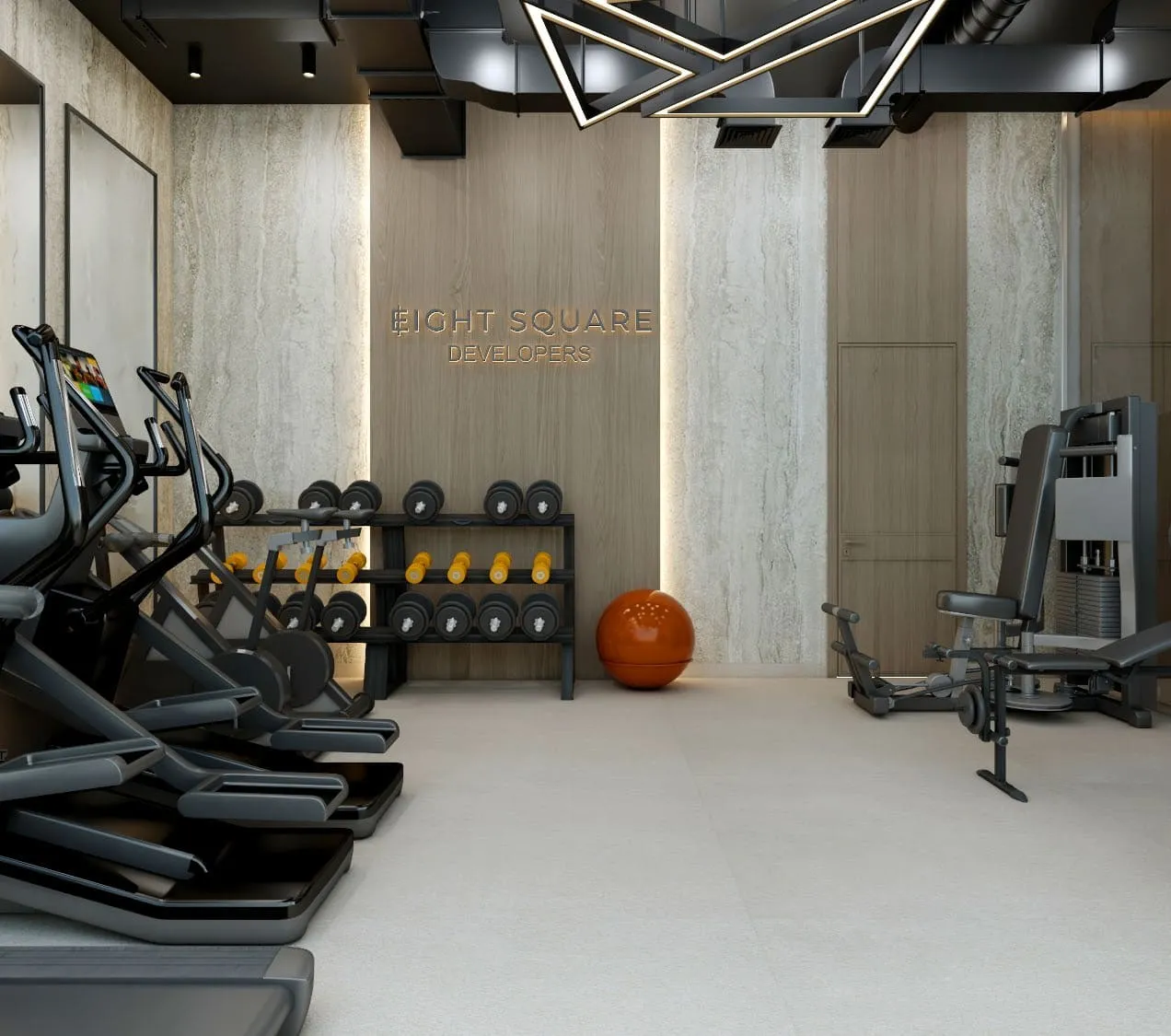 The amenity stack is selective rather than exhaustive, which suits the building's scale. Residents have access to an infinity pool, jacuzzi, gym, and a dry sauna that incorporates a Himalayan salt room. That last detail is specific enough to suggest the wellness brief was taken seriously rather than assembled from a standard checklist.