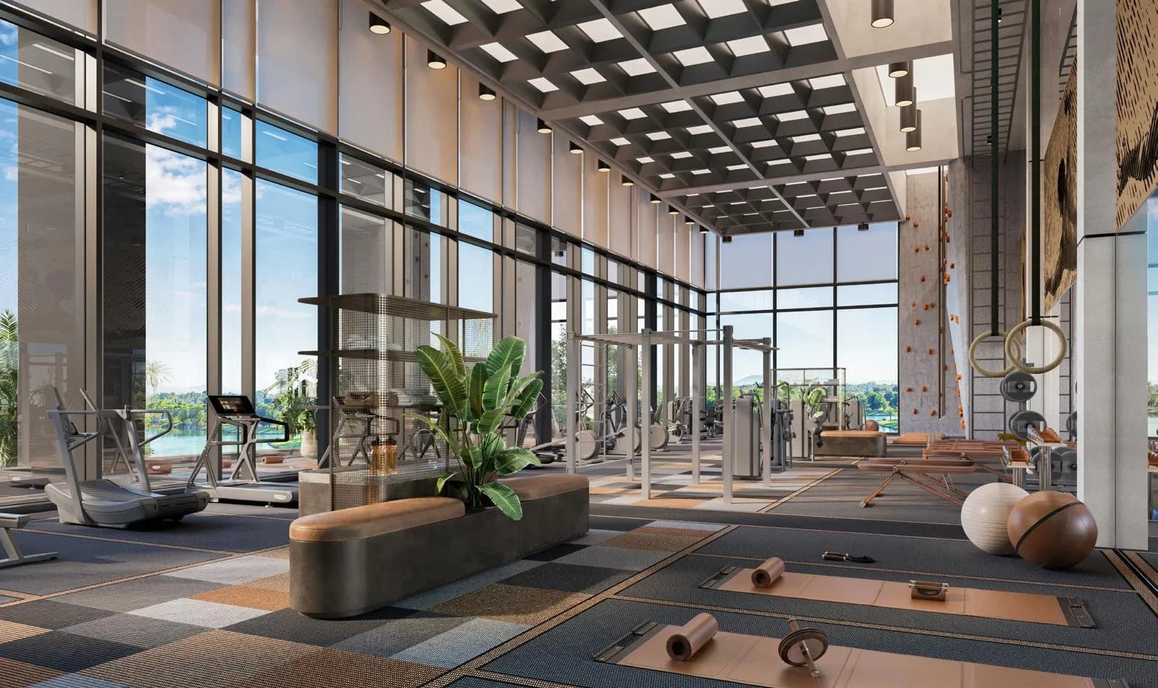 All residences are delivered semi-furnished, which in practice means fitted kitchens and a prepared interior foundation, leaving purchasers to complete the scheme to their own specification. Full-height windows are consistent across the range. Three-bedroom homes at 1,672 square feet allow for meaningful zoning between living, dining and private areas without the compression that affects many similarly priced city apartments.