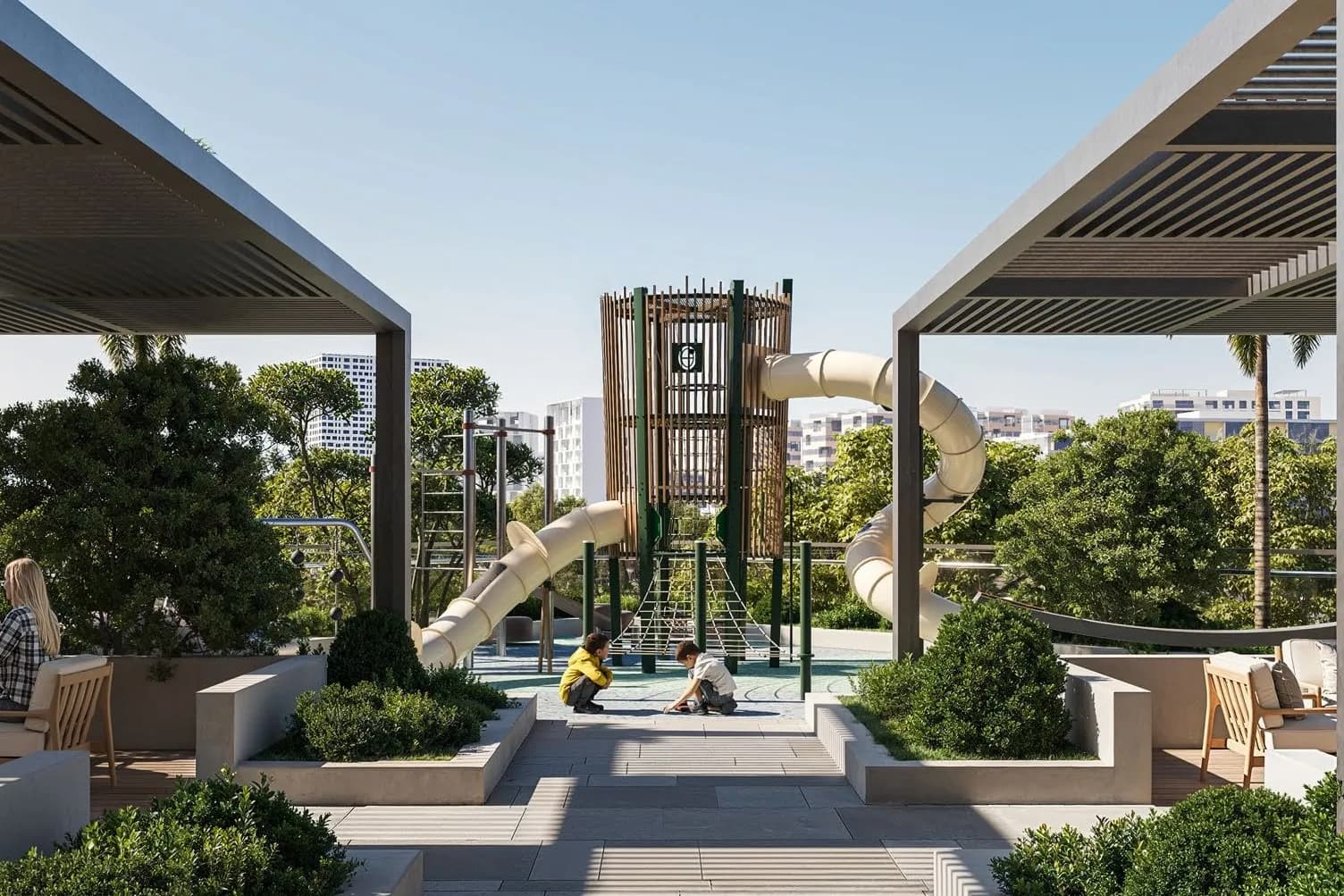 For a building of this scale, the amenities list is generous. Residents have access to infinity pools, sun decks and cabanas, a rooftop open cinema, a rooftop fire pit, a yoga deck, jogging track and a BBQ area. Indoor options include a gym, clubhouse, multipurpose hall and a kids' play area.