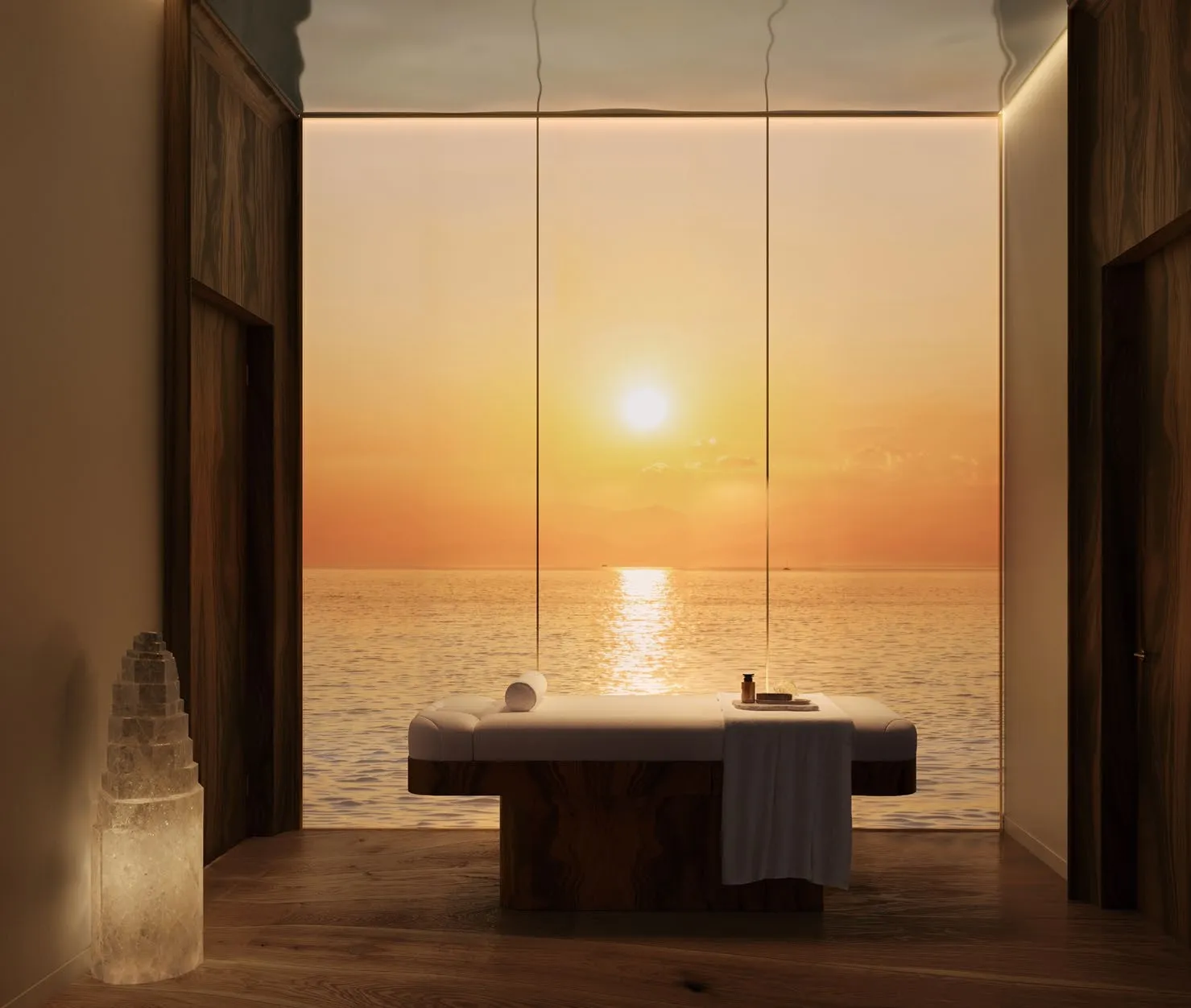 The wellness offer includes a spa, massage room, yoga room and a gym. A library, health bar and tea house, and an outdoor cinema round out the communal spaces. There is also provision for children, with both indoor and outdoor play areas.