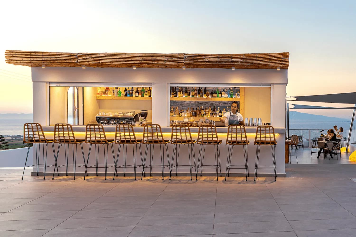 The architectural language draws on the marina setting. Views face the water, and the building's positioning is designed around that orientation.