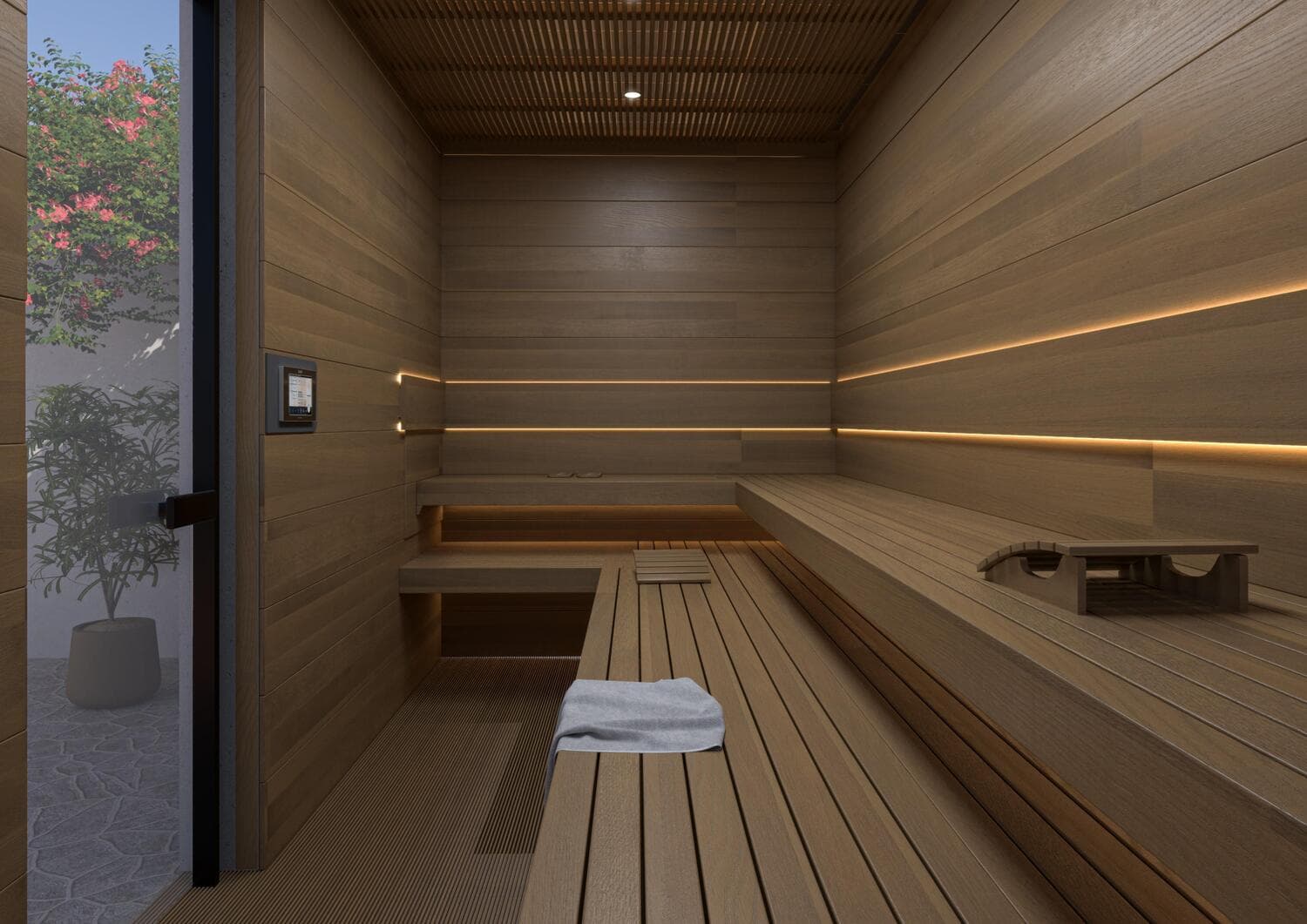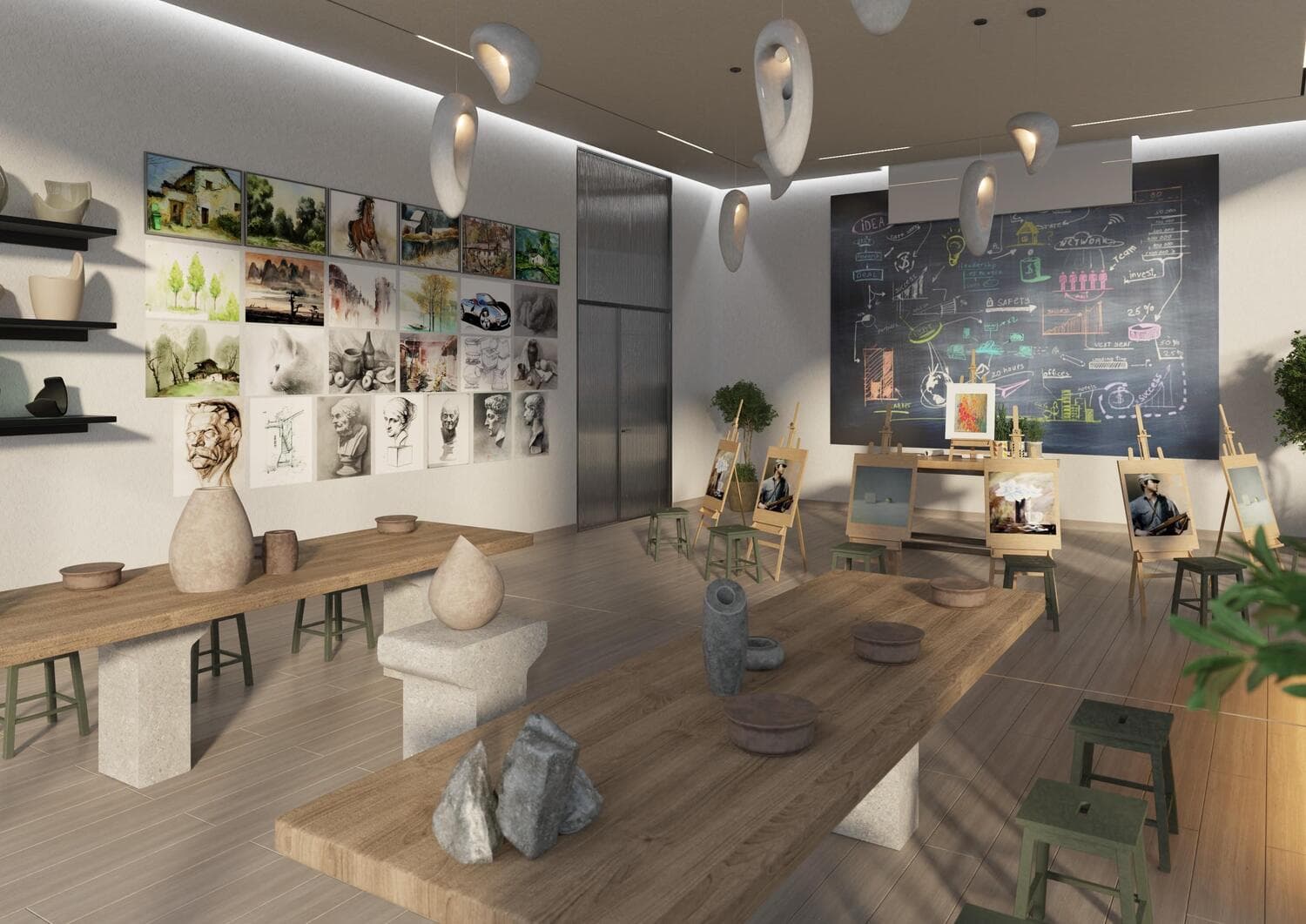 For a building of eight units, the amenity list is extensive. The development includes an island pool, outdoor yoga space, meditation area, steam room and a gym. Social infrastructure extends to a clubhouse, cigar lounge, coworking space, art studio, gaming room and both indoor and outdoor cinema facilities. A BBQ area and a children's play area complete the offering.