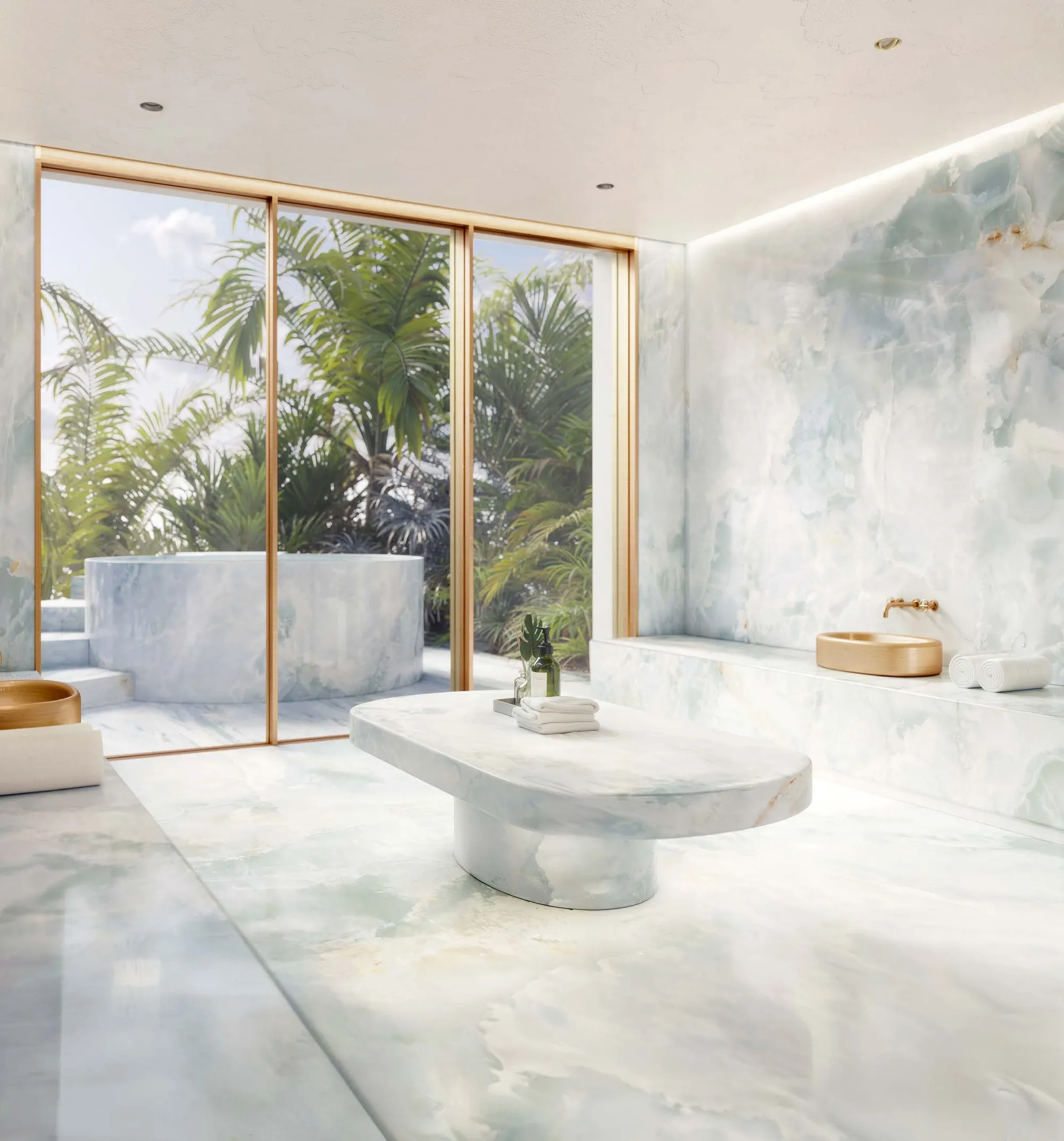 The kitchen fit-out integrates premium appliances alongside deep worktops. Bathrooms are finished with upscale fittings and material choices that reflect a spa-influenced brief rather than the standard developer specification.