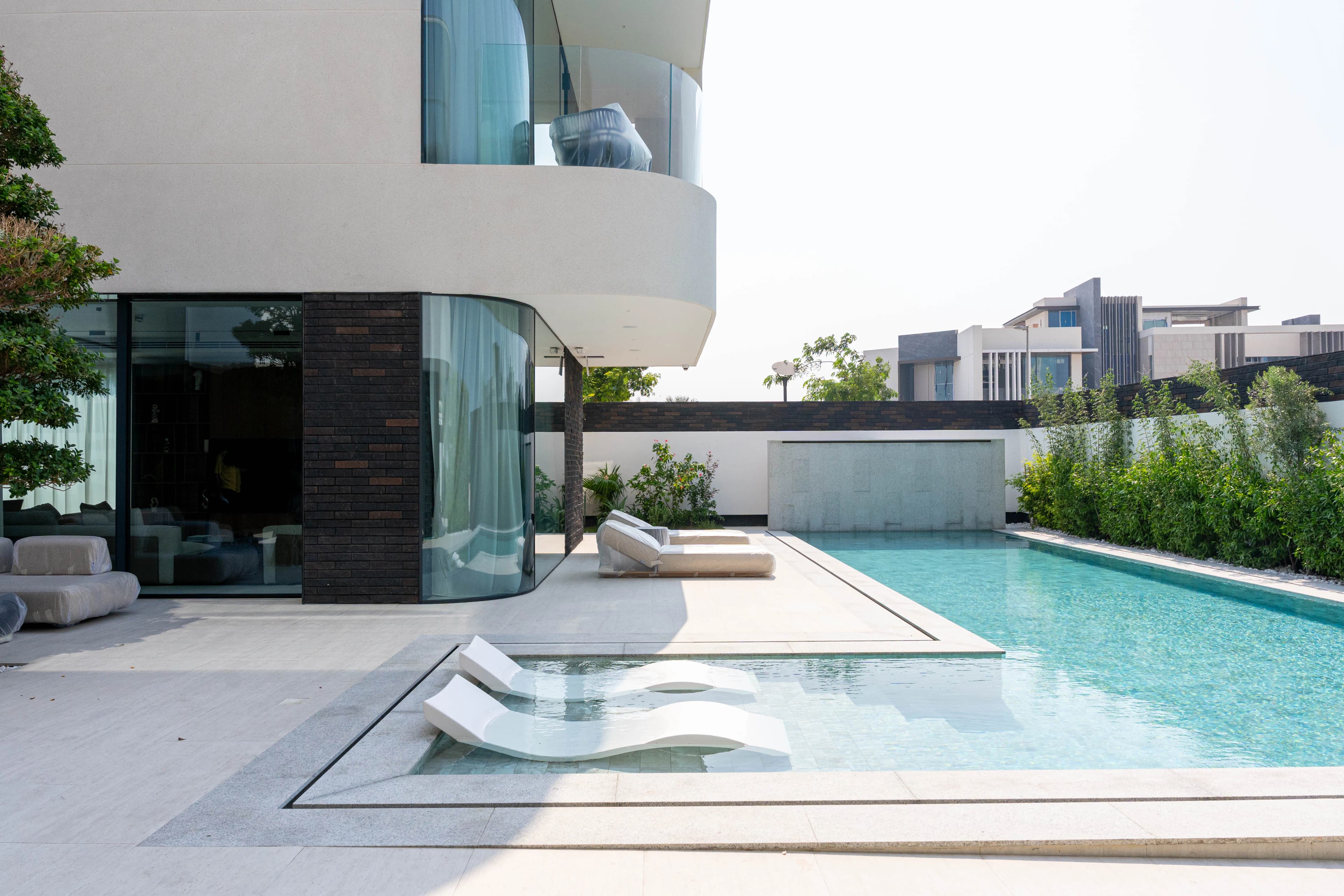 A villa with a single asking price of AED 59 million, no neighbouring units, and a service charge of AED 2 per square foot represents a specific kind of acquisition. The buyer is not purchasing into a development pipeline or speculating on off-plan delivery: the building is complete, the finishes are set, and occupation can begin immediately.
