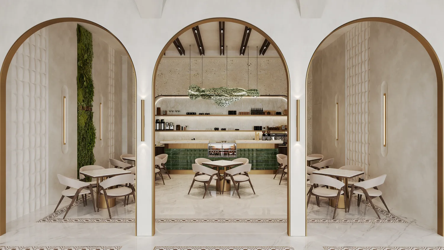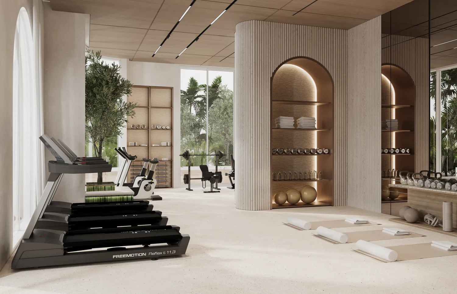 The specification, per the developer, includes natural stone surfaces, integrated kitchen appliances from international brands, and fitted cabinetry throughout. Bathrooms carry contemporary fixtures and quality sanitary ware. Built-in furnishings across the units are described as curated to align with the architectural language of the building.