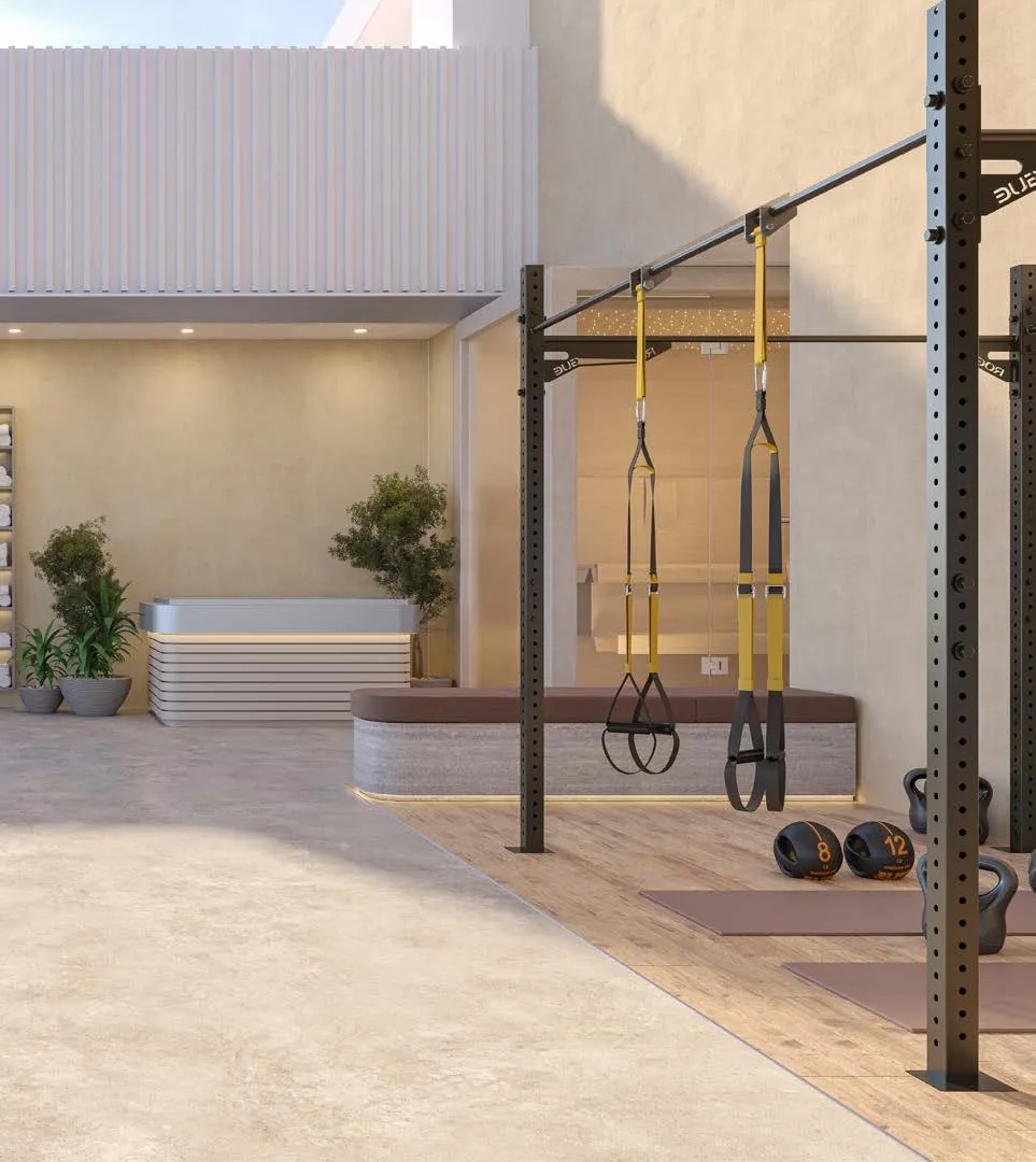 For a ten-unit building, the amenity list is extensive. Residents have access to an infinity pool, jacuzzi, sauna, cabanas, outdoor gym, yoga deck and landscaped gardens. Indoors, the building provides a cinema room, co-working space, multipurpose area and a kids' play zone. A BBQ area and EV charging infrastructure round out the offer.
