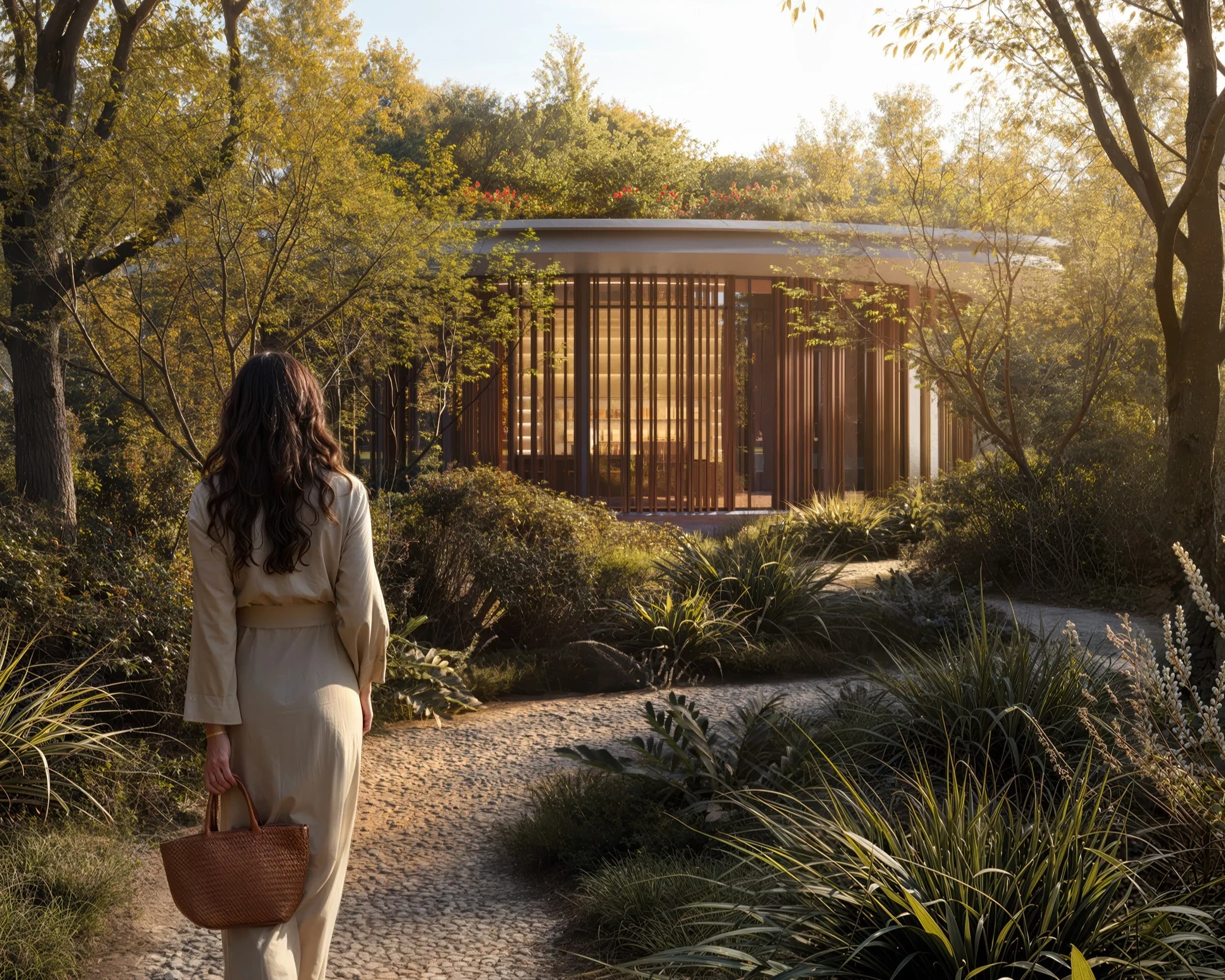 With only 23 residences, the building sits at the smaller end of what Majid Al Futtaim typically delivers. That scale is the point. The surrounding landscape, characterised by forest paths and open garden areas, shapes the architectural logic of the project rather than serving as decoration.