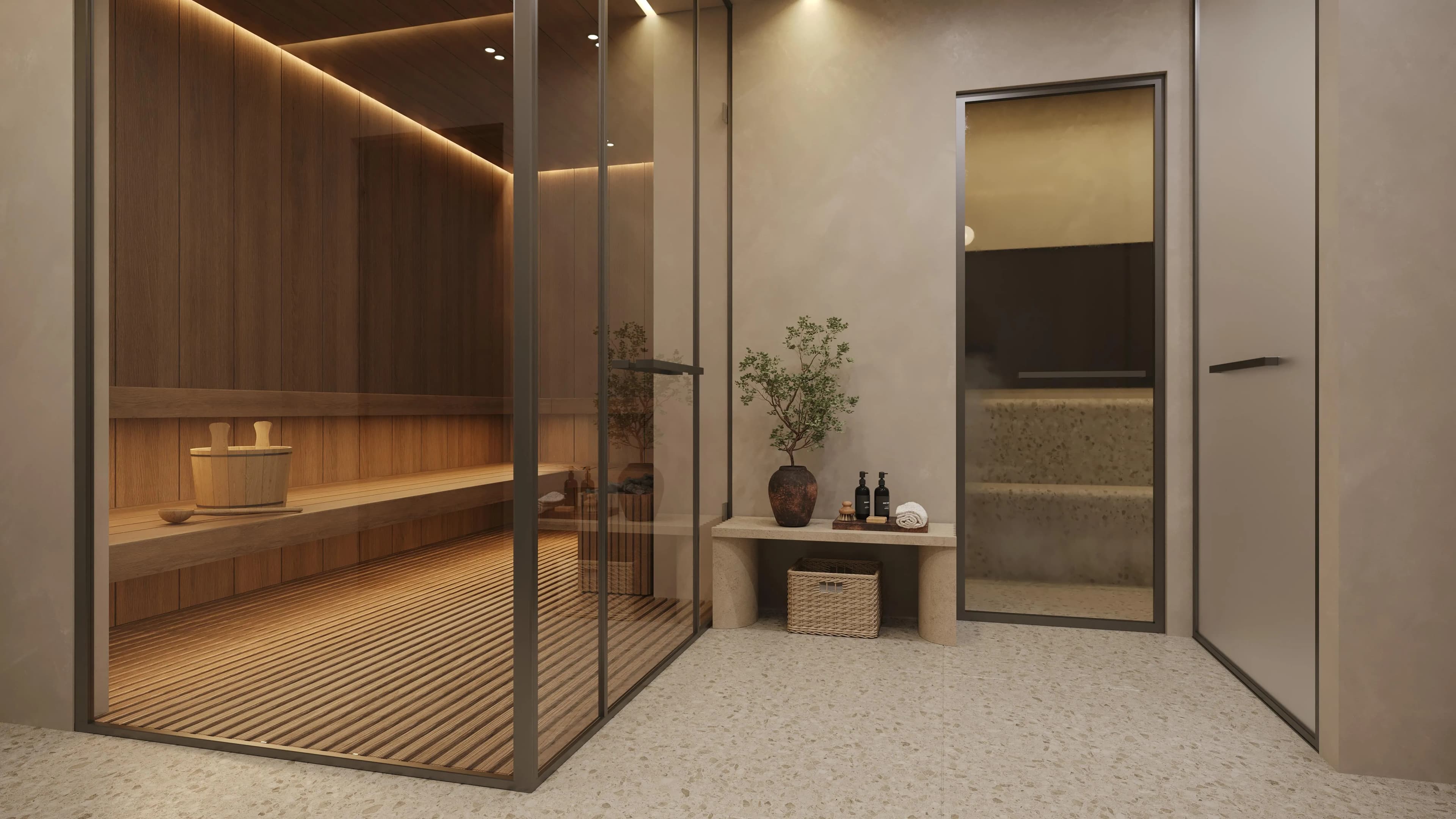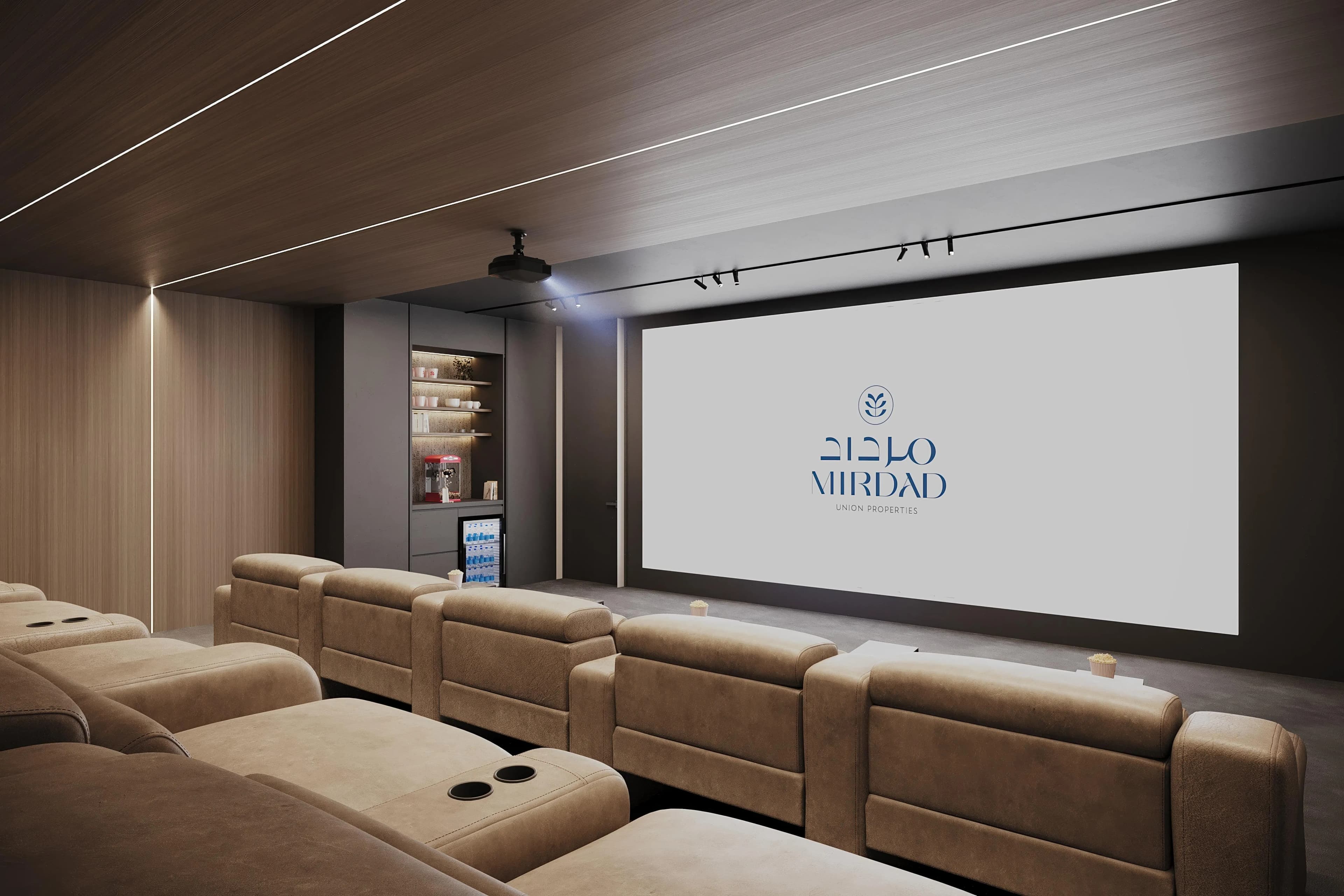 The amenity list at Mirdad is longer than is typical for a mid-market Motor City address. A clubhouse anchors the communal offer, supported by a spa, gym, swimming pool, basketball court and broader sports area. There is also a cinema, game room, multipurpose hall and co-working space, a combination that acknowledges residents who work from home without reducing the building to a serviced office.