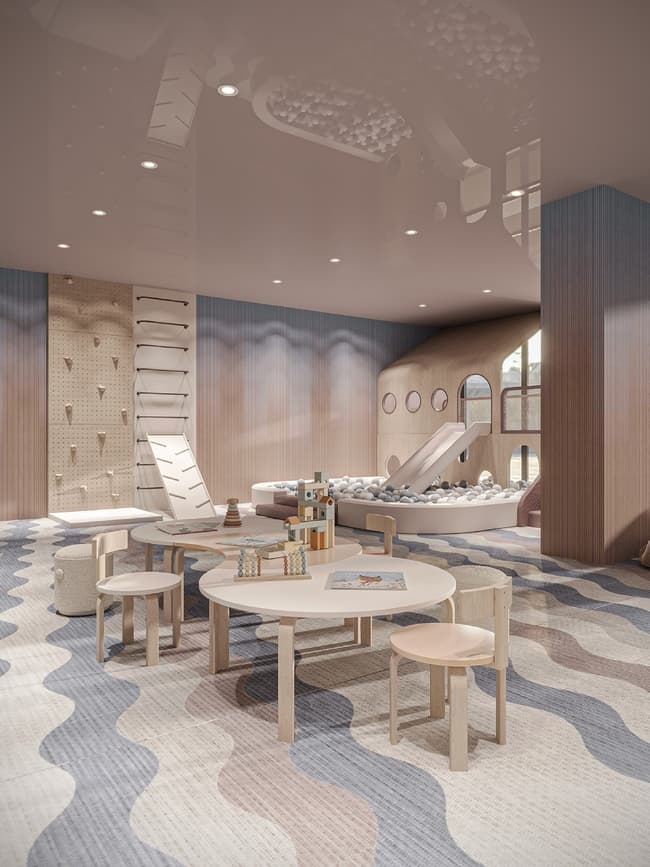 Social and family-oriented amenities include a games zone, a multipurpose lounge, an indoor children's play area and a virtual reality golf simulator. The combination suggests Iman Developers is pitching the building at owner-occupiers with families as much as at investors seeking a rental asset.