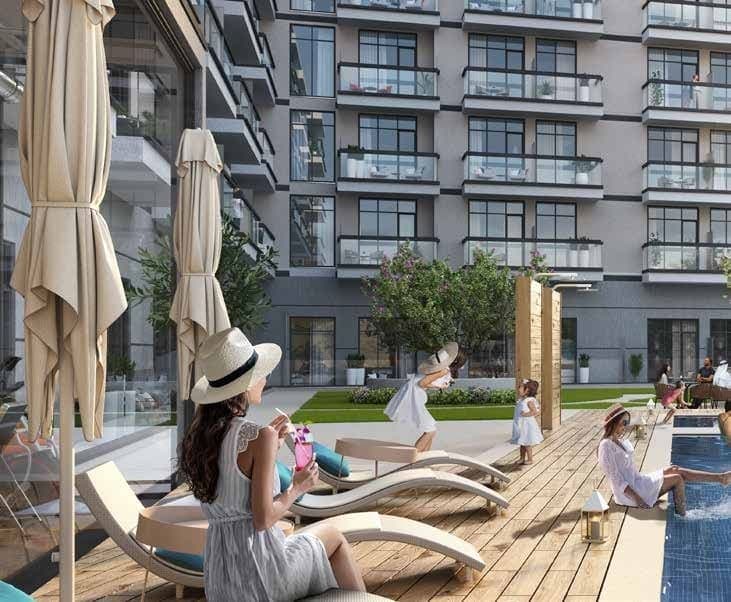 Specific floor areas and unit counts are not publicly available for this project. What is confirmed is that the building carries a service charge of 5 AED per square foot, a figure towards the lower end of the Dubai mid-market range and relevant to buyers calculating holding costs or assessing yield.