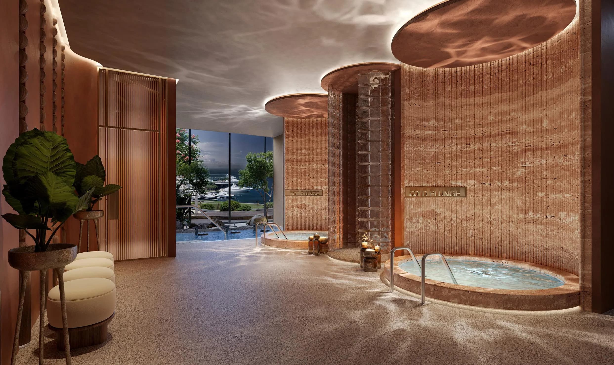 The three buildings, designated Portside Residences I, II and III, function as a single community rather than three separate addresses. A shared podium connects the towers and consolidates the amenity programme, which means residents in any of the three buildings use the same facilities.