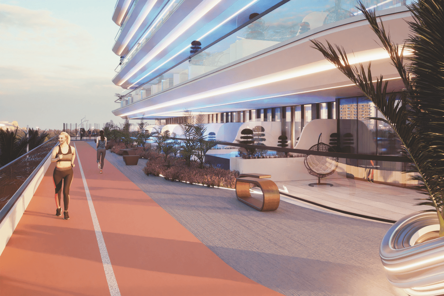 Samana Portofino occupies that context as a single building. The architectural language draws on Italian coastal references: layered facades, warm tones, and a pronounced emphasis on poolside terracing at multiple levels. Whether or not the Portofino metaphor fully translates to a production-zone postcode is a matter of taste, but the design intent is coherent, and the project reads as among the more considered residential additions to the district's skyline.