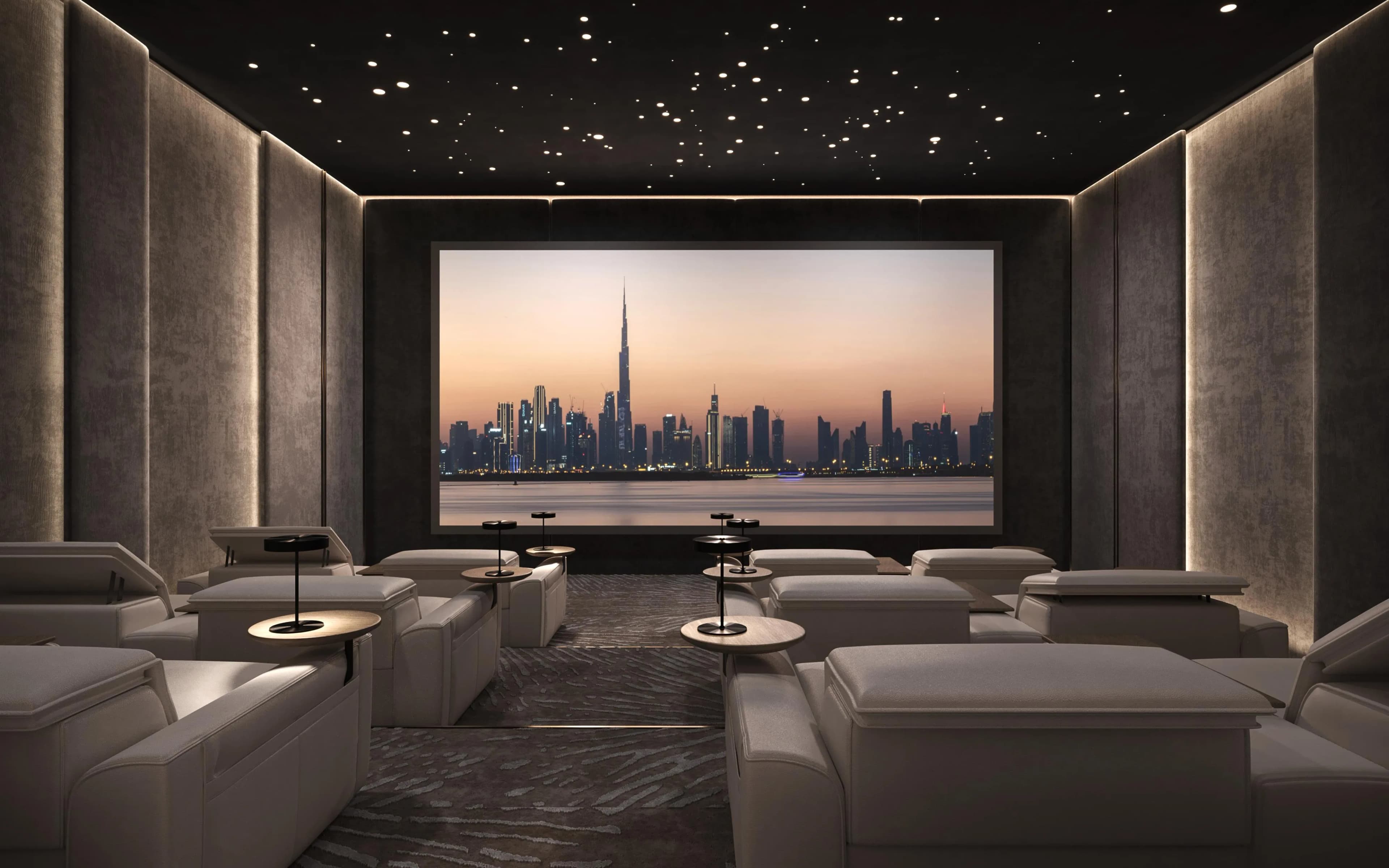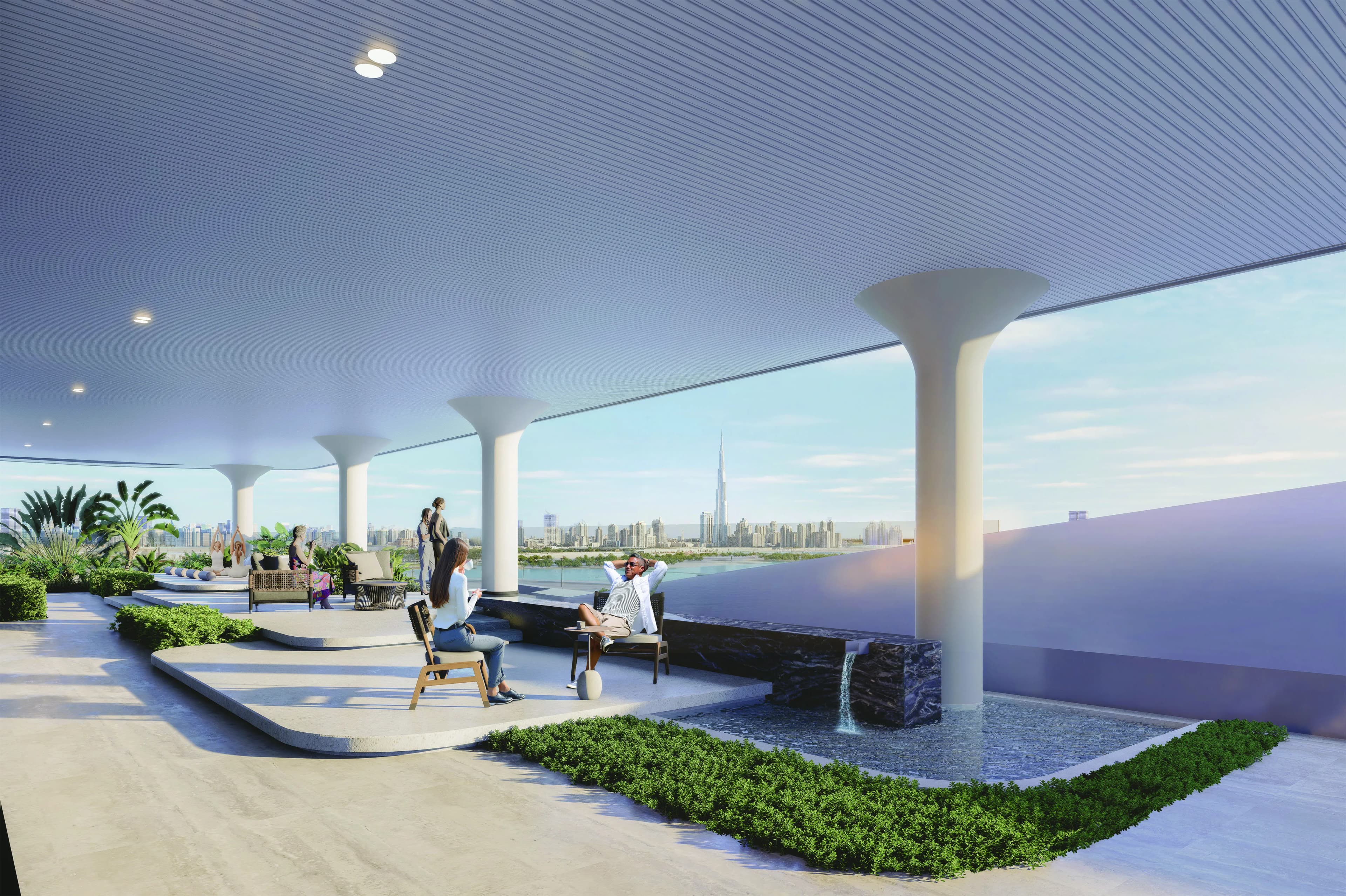 Two inclusions are worth describing more specifically. The indoor cinema provides a communal screening room, a format that has become standard in mid-to-upper residential buildings in Dubai but remains genuinely useful for smaller households that do not require private home entertainment infrastructure. The tranquility seating area with bonsai trees is an unusual gesture: a curated calm space rather than another lap pool or sun deck.