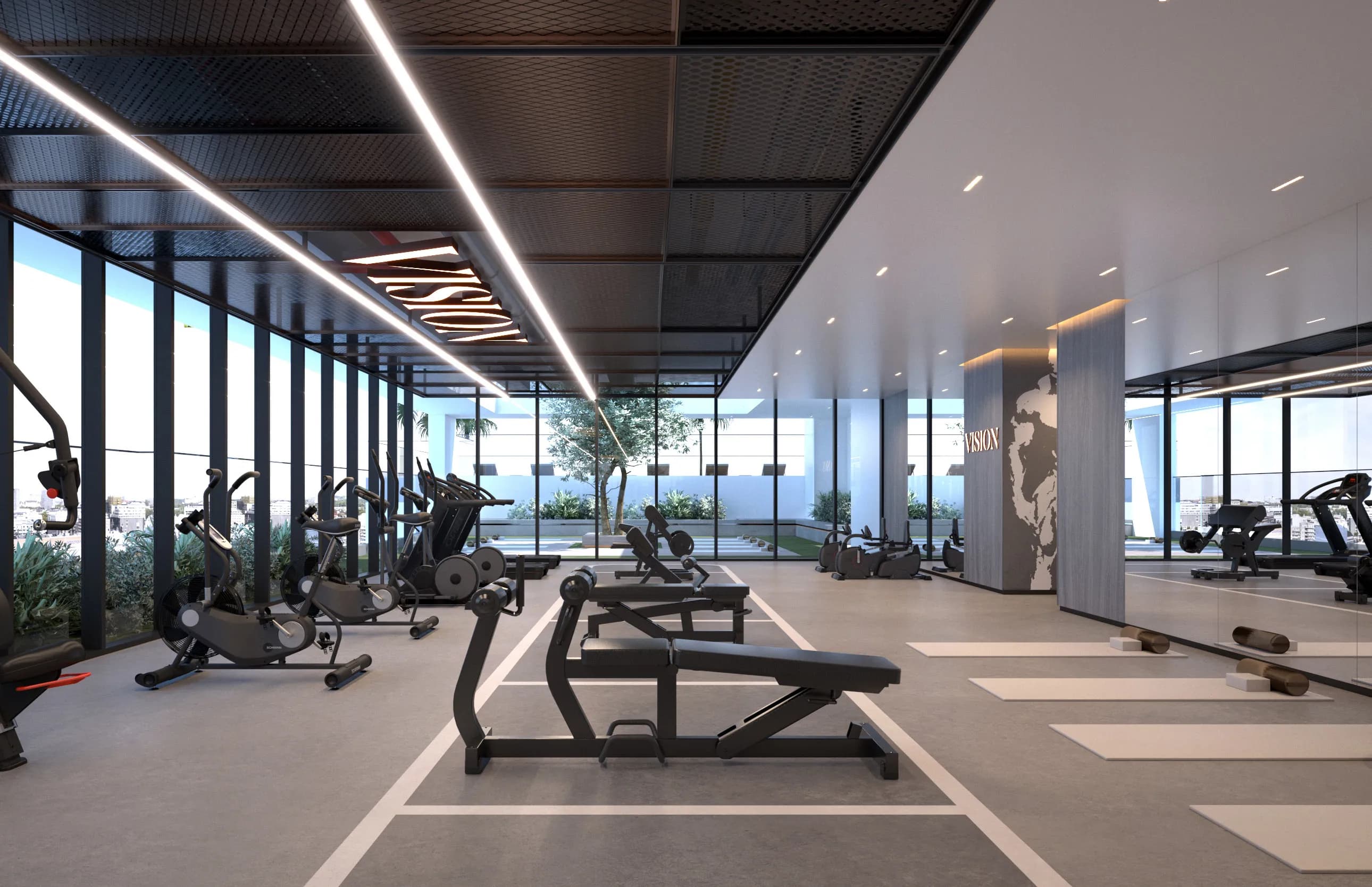 Apartments are delivered semi-furnished, which in practice means buyers receive a base fit-out rather than a blank concrete shell. Finishes draw on contemporary materials with a neutral palette, leaving room for personalisation without requiring a full interior programme from scratch. The service charge is set at AED 13 per sq ft annually, a figure worth holding against comparable mid-market schemes in the corridor.