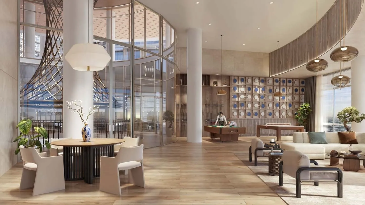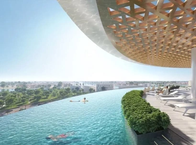 The architecture draws from Japanese minimalism, with clean lines and a deliberate emphasis on natural light. Palma Holding has credited the design to Nikken Sekkei, the Tokyo-founded international practice. The result, at least in intent, is a quieter visual register than the maximalist towers that dominate Dubai's busier districts.