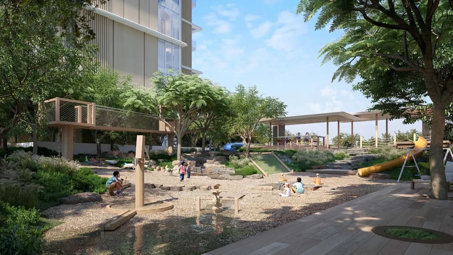 Beyond the clubhouse, the development includes landscaped gardens, a kids' play area, retail and food and beverage spaces, and a multi-functional hall. The provision is broad enough to reduce residents' dependence on external venues for daily leisure, which matters more in a lower-density community like Jumeirah Islands than it might in a district with street-level retail already in place.