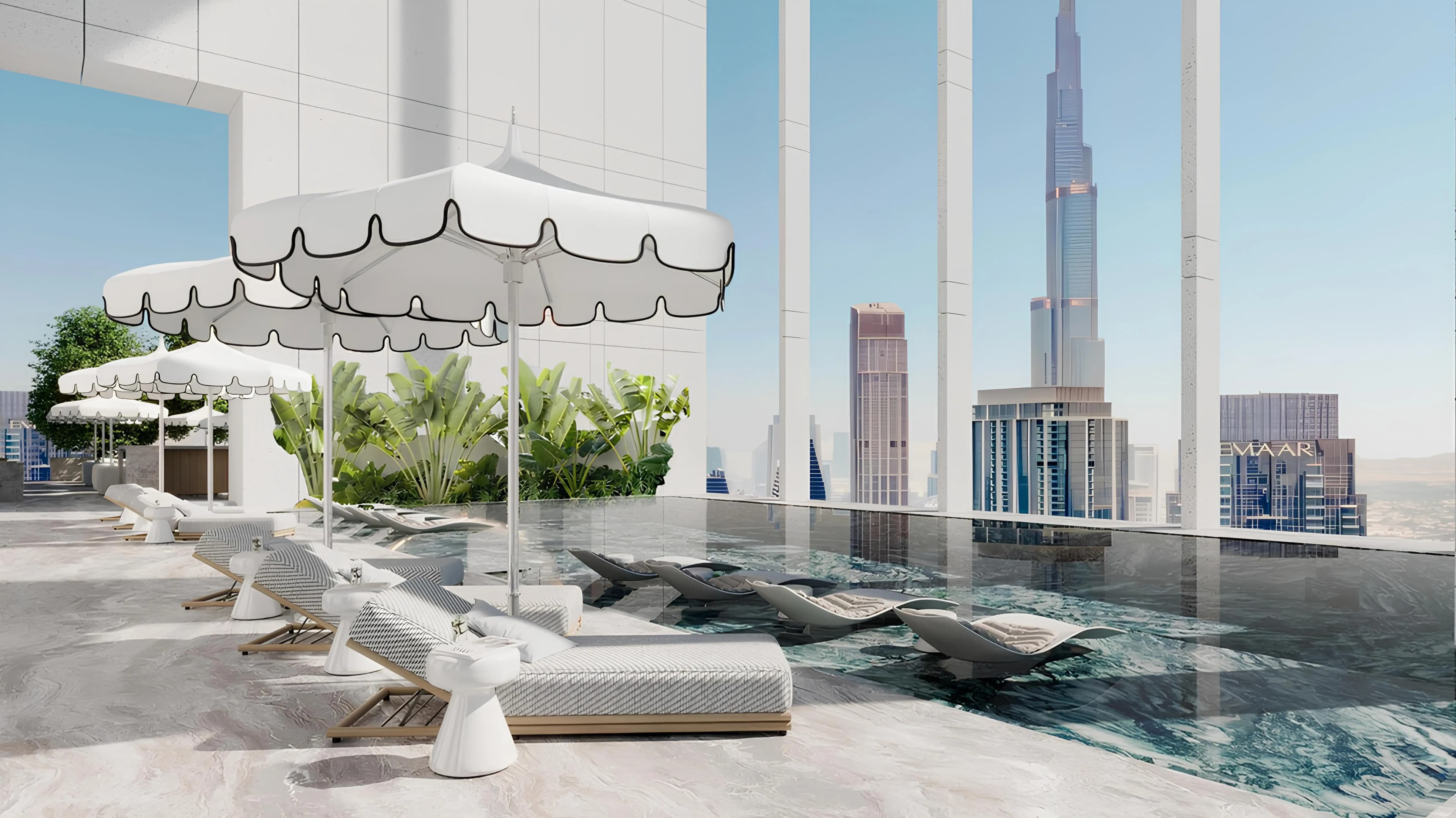 At AED 3.04 million for a one-bedroom and AED 30 million for the penthouse, the price range is wide enough to accommodate both a first Dubai acquisition and a significant portfolio addition. The service charge at AED 25 per sq ft is not a low number, but it is consistent with what branded residences in this district command operationally. Buyers entering at the one-bedroom level should model that cost carefully against projected yield. Those at the penthouse level are buying a different equation entirely.