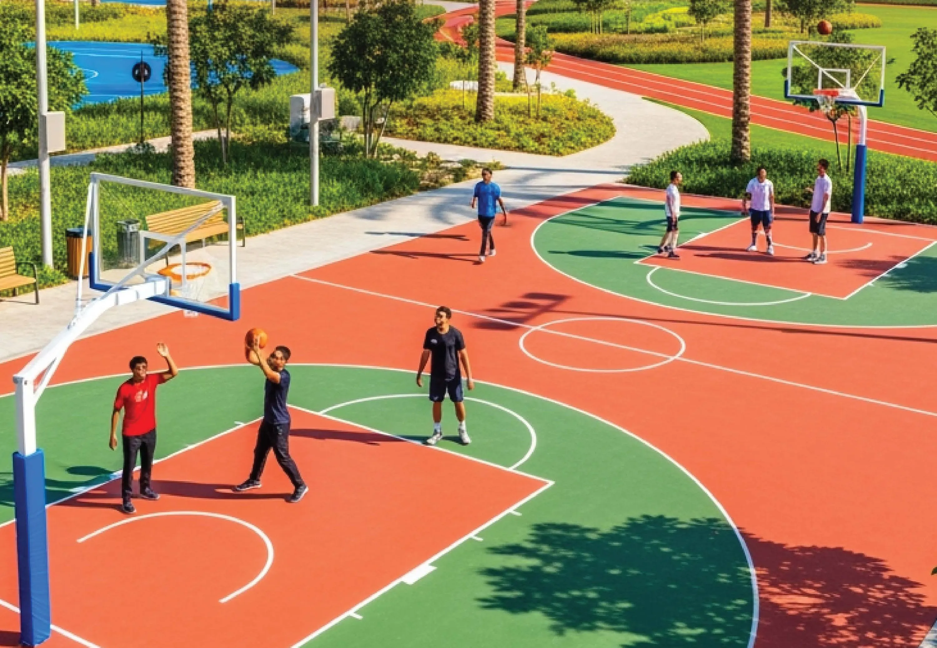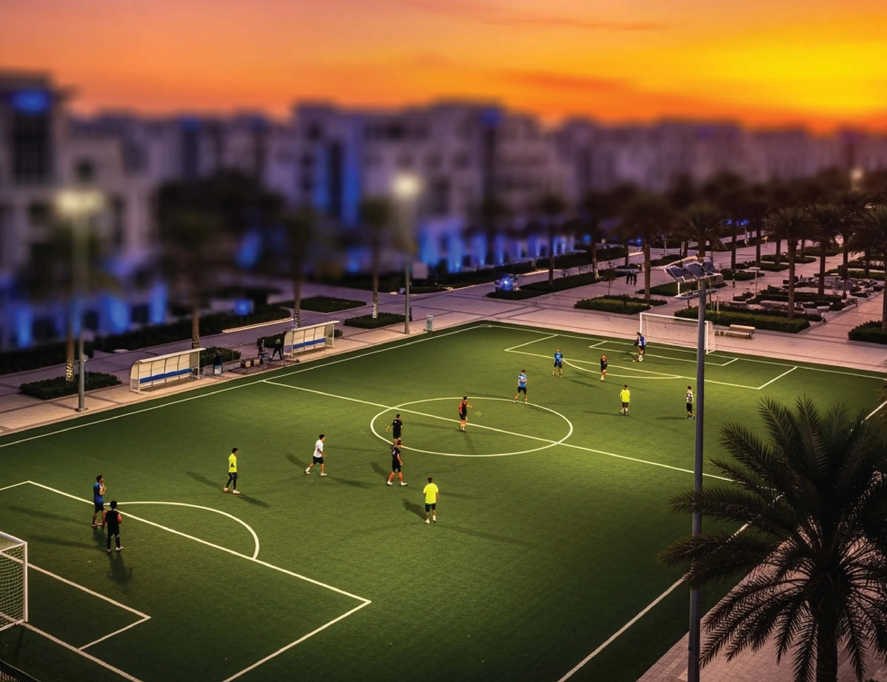 The district lacks the retail and dining density of established communities such as Jumeirah Village Circle or Downtown, but that gap has been closing as the surrounding master communities have matured. Schools, mosques and community retail are present within the wider Liwan and Wadi Al Safa cluster.