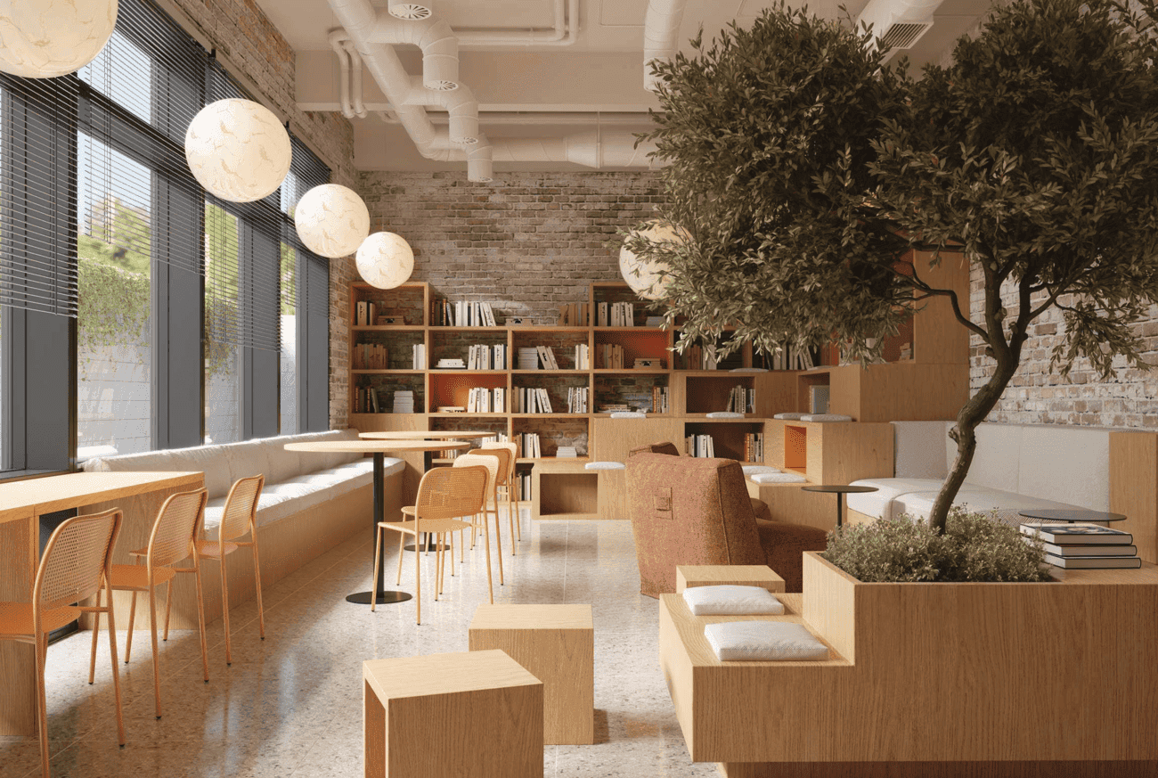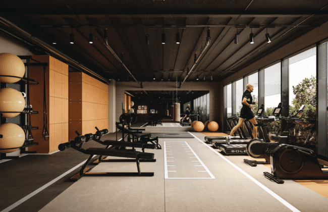 At street level, the building houses a co-working space, a lounge with a coffee cart, a concierge desk, and round-the-clock security. For residents who work remotely or run businesses from the address, having a professional workspace one floor below the apartment carries genuine daily utility.