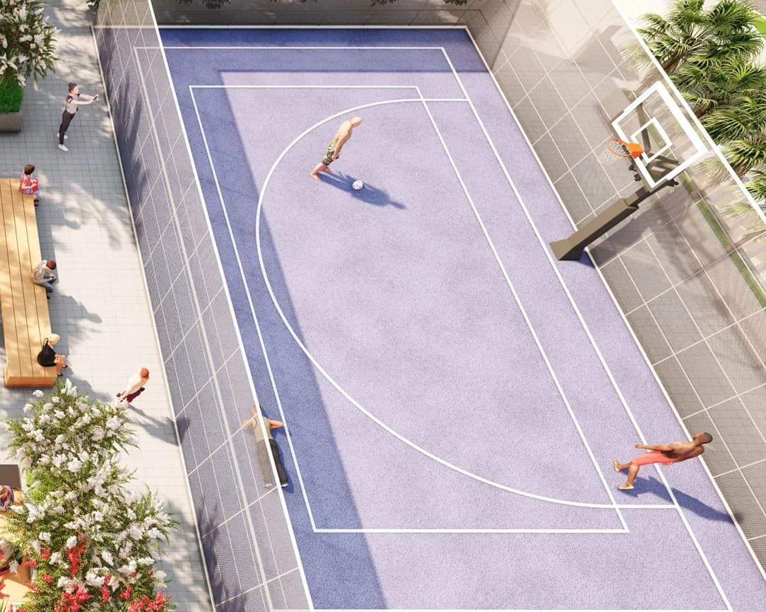 On the active side, the building includes a gymnasium, swimming pool with sun deck, sports courts, a running track and landscaped gardens with outdoor patios. On the work and social side, there are coworking spaces, private meeting rooms and a games room. That combination is increasingly common in Business Bay developments targeting professionals who split their time between Dubai and other cities.
