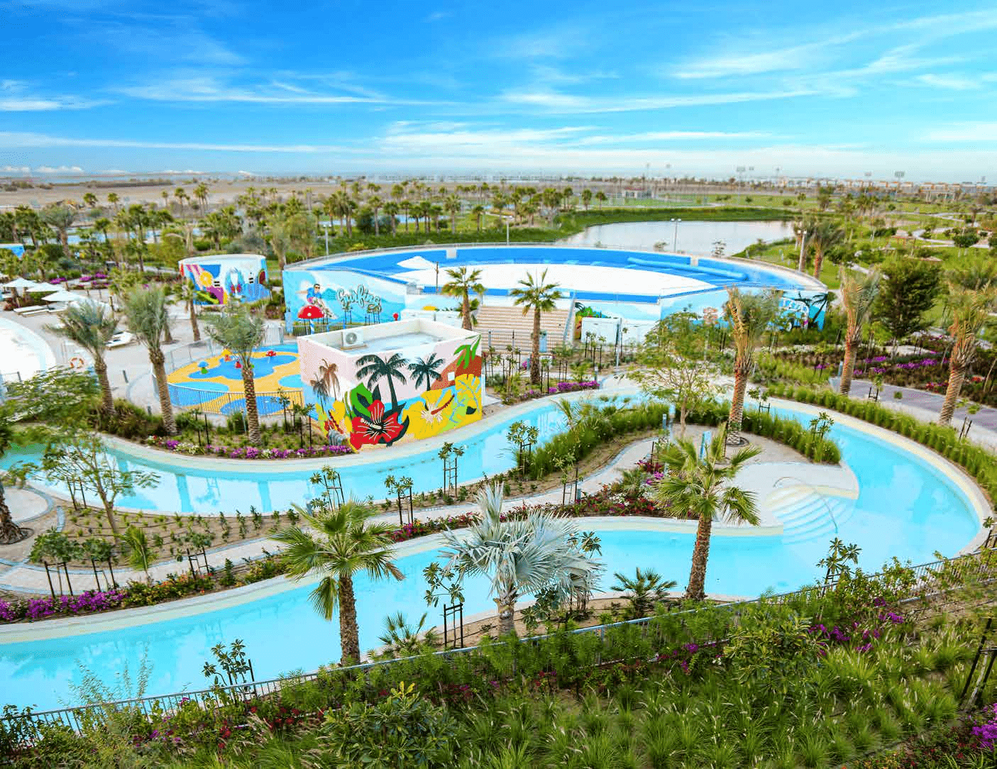 The community's scale is relevant context. Residents are not buying into a single building with a rooftop pool; they are buying into a neighbourhood that includes its own retail mall at Akoya O2 approximately four kilometres away, a community park within 1.1 kilometres, and a range of purpose-built leisure destinations that the developer has installed across the master plan. Verona's townhouses are positioned to access all of that without a car journey of any consequence.