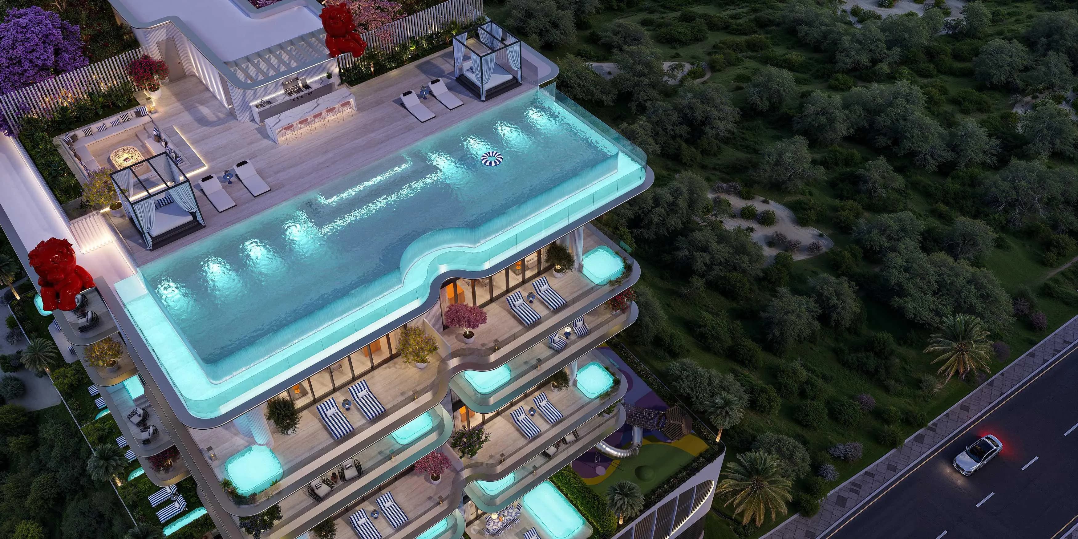 The building's amenity offering covers the practical and the aspirational in roughly equal measure. A fitness studio and spa address everyday wellness requirements, while an infinity pool, BBQ area, and a terrace described by the developer as "Terraces of the Dolce Vita" are oriented toward the leisure side of residential life.