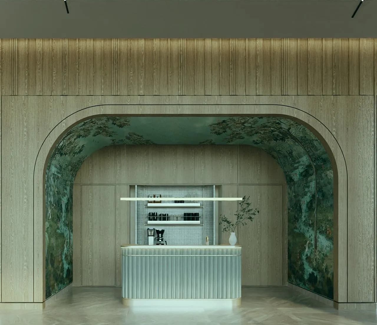 The architecture draws on a philosophy of continuity between interior and landscape: open layouts, large windows and flowing forms that face the lagoon. Where many Dubai developments treat water as a backdrop, the orientation here is more deliberate, with communal and private spaces arranged to maintain a direct relationship with the waterfront.
