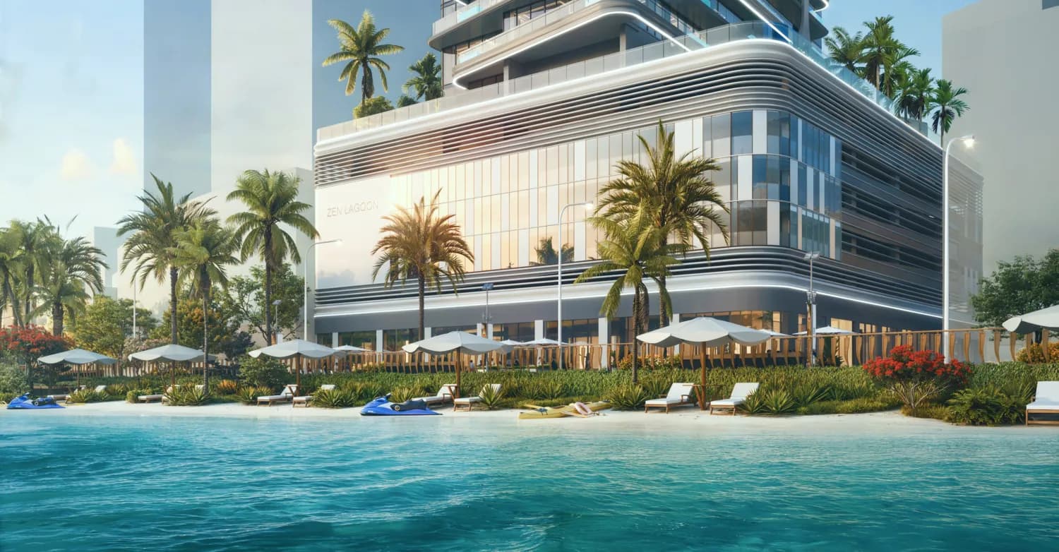 Zen Lagoons is a residential apartment building by Sanzen Developments, currently under construction in Bukadra, Dubai, and available for purchase off-plan. The project occupies a waterfront position and centres its design language on stillness, natural materials and direct access to a crystal lagoon.
