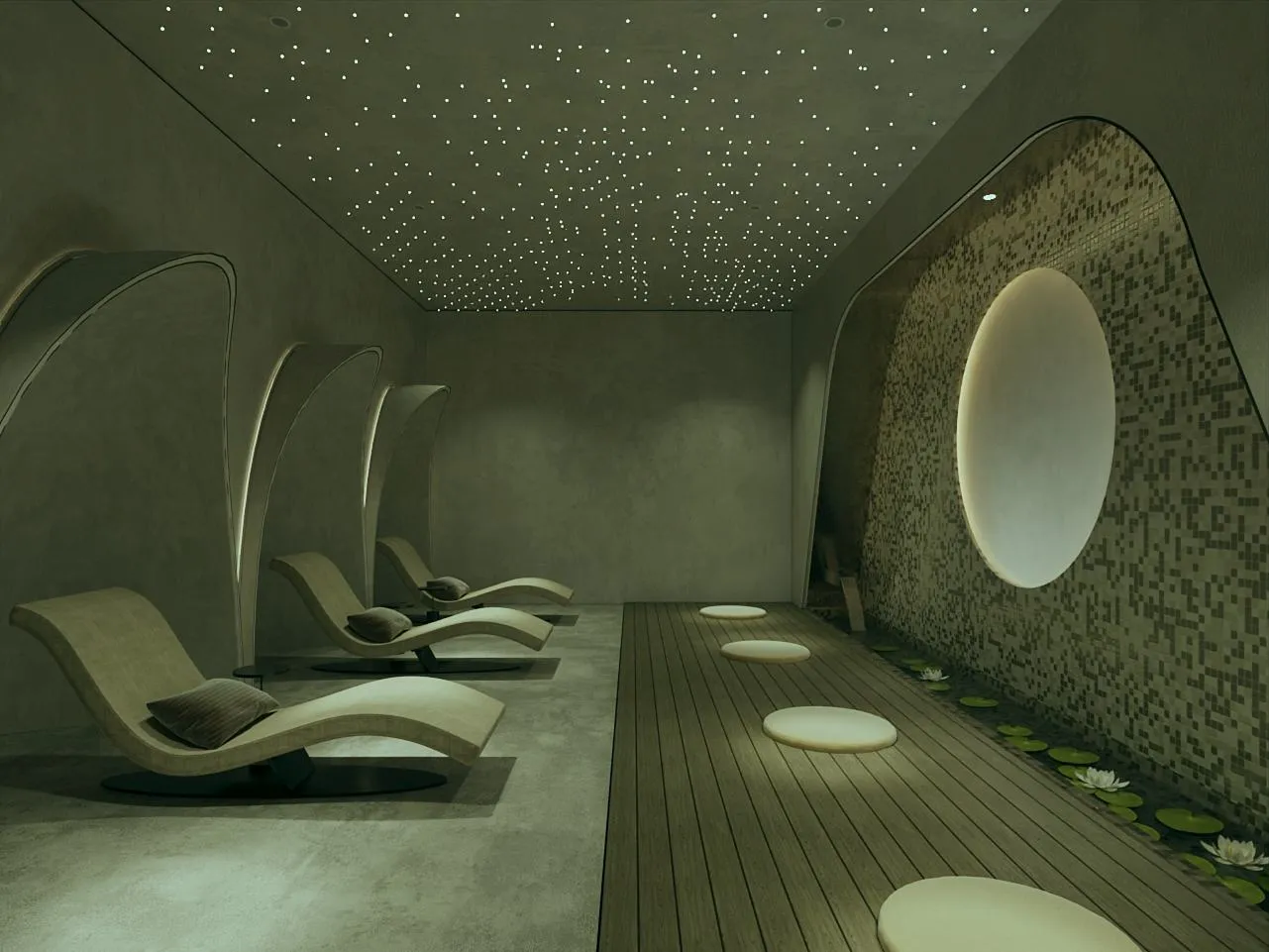 The amenity provision is unusually specific in its wellness focus. Alongside a gym, swimming pool and pilates studio, the building includes a sound healing room, aromatherapy facilities, a massage room and yoga with dedicated meditation pods. That combination sits at a different point on the spectrum from the standard Dubai amenity checklist of padel courts and a rooftop pool.